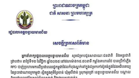 จังหวัดบันเตียเมียนเจย ออกแถลงการณ์ อ้างทหารไทยยิงพลเรือนกัมพูชาเสียชีวิต
