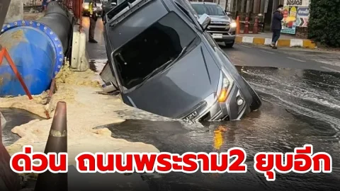 ด่วน ถนนพระราม2 ยุบอีก รถกระบะตกหลุม หลังเกิดหลุมทรุดตัวกลางถนนขนาดใหญ่