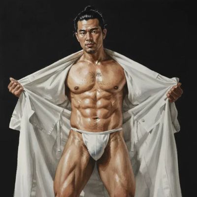Hunk man with painting