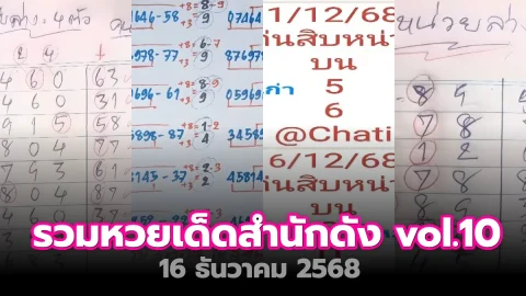 เลขเด็ด เลขมาเเรง เลขดัง "รวมหวยเด็ดสำนักดัง vol.10" งวดวันที่ 16 ธันวาคม 2568