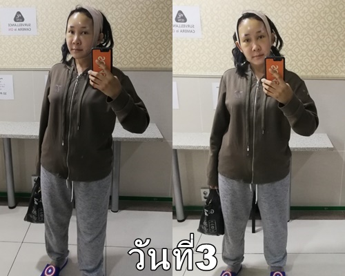 ช่วงเย็นมาสังเกตุคะว่า ตรงคางเราบวมๆหน่อย เอ๊ะหรือไขมันจะย้อย รีบสอบถาม กับทาง รพ. ซึ่งจะมีทีมล่ามคนไทยที่ช่วยดูแลเราอยู่ ค่อยแนะนำสอบถามอาการหลังผ่าตัด ซึ่งทางล่ามบอกว่า เป็นอาการบวมปกติ เป็นอาการบวมไล่ลงมาเรื่อยจากช่วงบนลงมา ที่จริงช่วงบนเป้บวมน้อยมาก ที่ศรีษะไม่บวมเลย คุณหมอบอกไม่ต้องพันแผลเลยค่ะ ปกติคนอื่นจะต้องพันแผลกันบวมอยู่ 3 วัน แต่ของเป้ไม่ต้องพัน เพราะแผลดี ไม่บวม