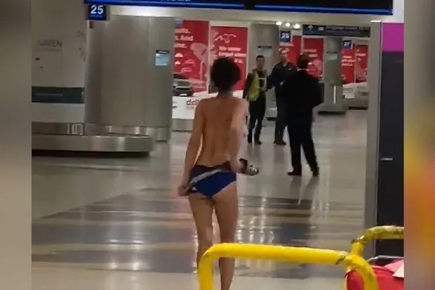 (คลิป)ประสาทแดก!สาวเดินยั่วถอดทีละชิ้นจนหมดตัวในสนามบิน ก่อนออกไปโบกรถข้างทางเหมือนคนบ้า!