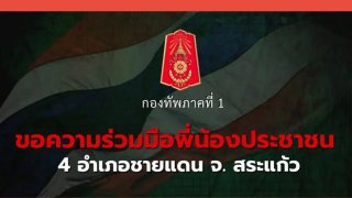 ด่วน! กองทัพภาค 1 แจ้งเตือนประชาชน 4 อำเภอชายแดน ‘สระแก้ว’ งดเข้าที่พักอาศัย-ด่วน! ทภ.1 แจ้งเตือนประชาชน 4 อำเภอชายแดนสระแก้ว