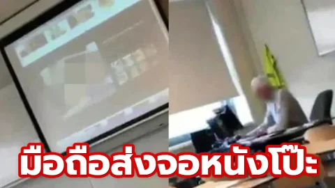 นักเรียนตกใจ หลังครูแอบดูหนัง..ในห้องเรียน มือถือส่งหน้าจอเข้าโปรเจคเตอร์ไม่รู้ตัว