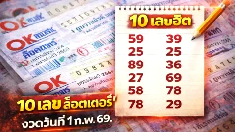 10 เลขฮิต "OK ล็อตเตอรี่" งวดวันที่ 1 กุมภาพันธ์ 69..ส่องก่อน รวยก่อน!!Hot Topic ที่มีผู้ตอบล่าสุด