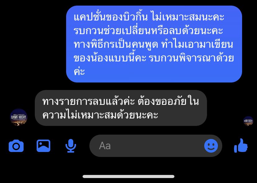 - โหแล้วตั้งแคปชั่นแบบนี้ได้ไงอะ ทั้งที่บิวไม่ได้รับมุขด้วยเลยซักนิด อย่ายัดเยียดพฤติกรรมไม่เหมาะสมให้แขกรับเชิญเลยค่ะ