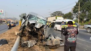 รถตู้พาคนจากสมุยกลับภูเขียวไปเลือกตั้ง หลับในชนเสาไฟ เจ็บ 7 ราย อดใช้สิทธิ์