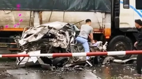 รถชนเละแต่คนขับรอด ปีนออกจากรถแบบงงๆ