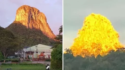 ปรากฏการณ์ "ภูเขาสีทอง" ความงามของแสงยามเย็น