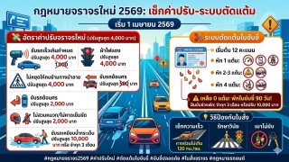 กฎหมายจราจรใหม่ 2569 ยกเลิก "เตือนก่อนปรับ" เช็กค่าปรับ-ระบบตัดแต้มที่นี่!