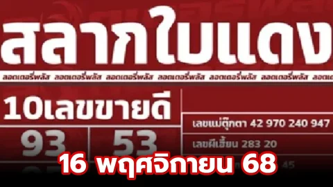 10 เลขขายดี "สลากใบแดง" งวดวันที่ 16 พฤศจิกายน 68 พรุ่งนี้รวย คอหวยส่องด่วน!!