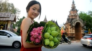 วัยรุ่นเชียงใหม่ไม่ตกเทรนด์! แห่สวมชุดไทย-ใส่เดรส ถือดอกบัวถ่ายรูปตามวัดและริมคูเมือง..ตามกระแสวัยรุ่นกรุงเทพฯ