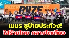 เขมร ชูป้ายประท้วง ใส่ร้ายไทย กลางกรุงโตเกียว