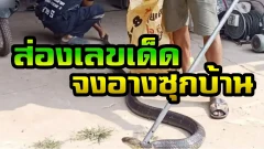 ระทึก! จงอางยักษ์ยาวกว่า 3 เมตร ซุกกองไม้ข้างบ้าน คอหวยแห่ส่องเลขเด็ด