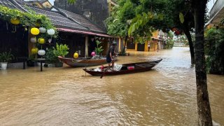 “ฮอยอันจมบาดาล” ฝนถล่ม-น้ำทะเลหนุนสูง ชาวบ้านพายเรือกลางย่านเมืองเก่า