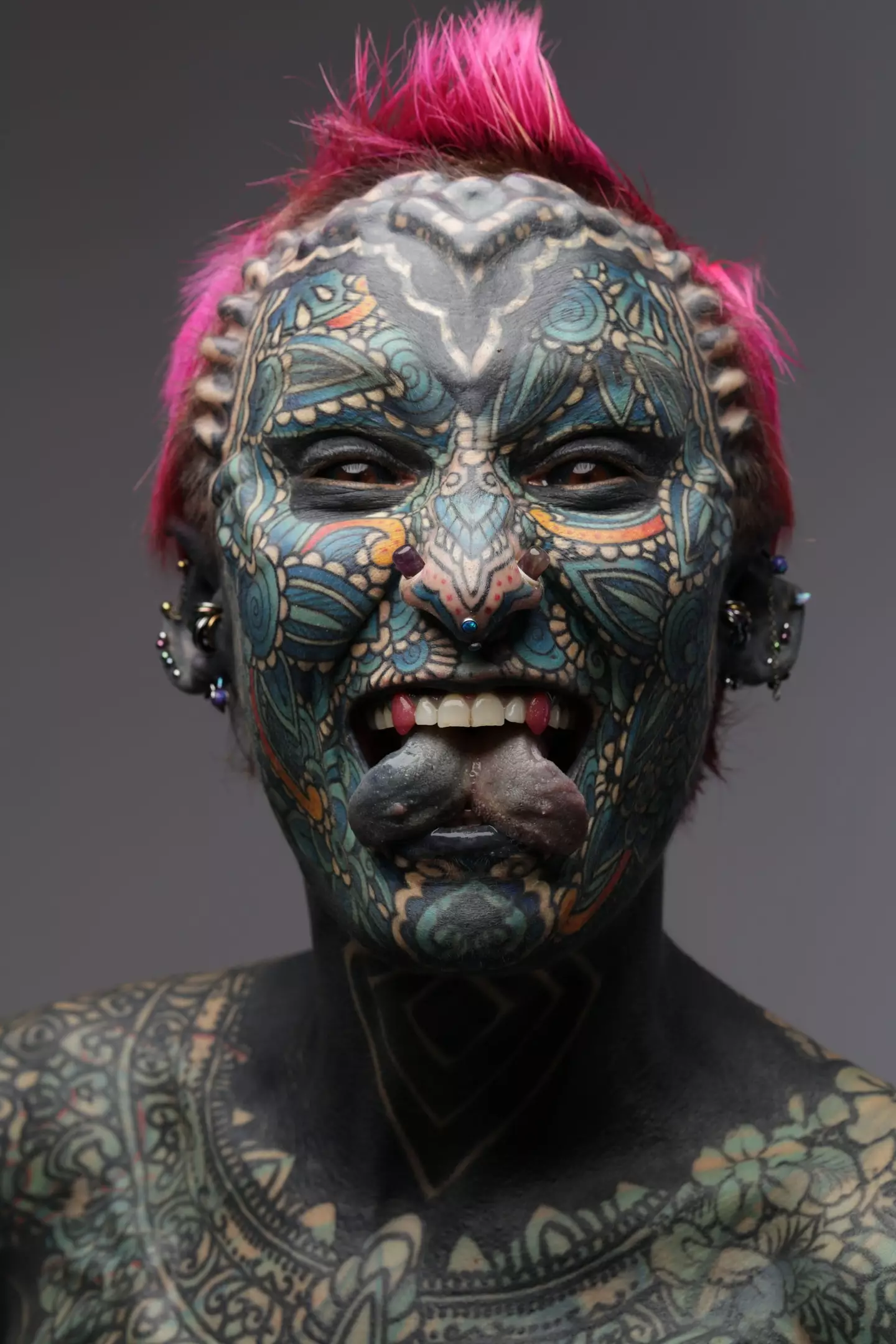 https://nypost.com/2024/08/23/us-news/inked-army-vet-esperance-fuerzina-with-forked-tongue-and-pierced-genitals-breaks-world-record-with-99-9-of-body-tattooed/