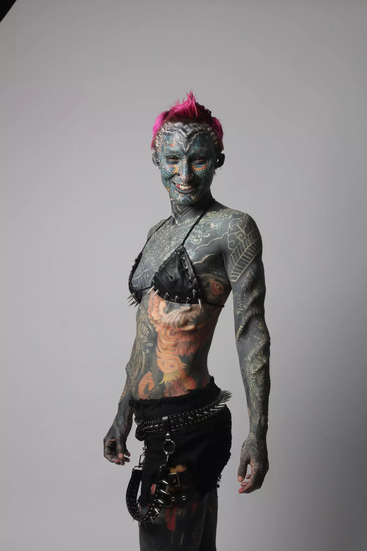 อดีตเจ้าหน้าที่บริการทางการแพทย์วัย 36 ปี มีผิวหนังที่ถูกปกคลุมด้วยหมึกถึง 99.8% และมีการดัดแปลงร่างกาย 89 ครั้ง (SWNS)