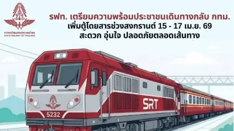 รฟท. เสริมตู้โดยสารรับ "สงกรานต์ 2569" ขากลับเข้ากรุงฯ พร้อมคุมเข้มมาตรการความปลอดภัย 24 ชม.