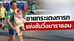 ชายกระเตงทารกลงแข่งวิ่งมาราธอน ถูกเจ้าหน้าที่สั่งให้ออกจากการแข่งขัน