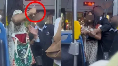สาวคลั่งถือมีดบนรถเมล์ทำให้ผู้โดยสารแตกตื่นและพยายามทำร้ายกระเป๋ารถเมล์