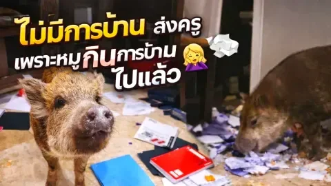 ไม่มีการบ้านส่งครู เพราะหมูกินการบ้านไปแล้ว