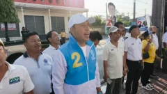 โค้งสุดท้าย! สส.หนึ่ง ปชป.ลุยขอคะแนนเสียง แปดโมงร้องเพลงชาติหน้าโรงพัก