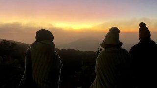 ท้องฟ้าทอแสงในยามเช้าอันรุ่งอรุณ "ยอดดอยอินทนนท์ประหนึ่งอากาศหยุดนิ่งไม่ไหวติง"