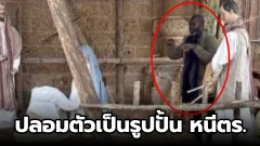 ผู้ต้องหาปลอมตัวเป็นรูปปั้นเพื่อหลบหนีตำรวจ ถูกจับได้