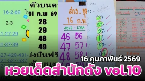 เลขเด็ด เลขมาเเรง เลขดัง "รวมหวยเด็ดสำนักดัง vol.10" งวดวันที่ 16 กุมภาพันธ์ 2569