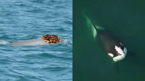 [เผยความลับ] โลมาหนุ่มออสซี่ใช้ 'ฟองน้ำสวมหัว' เป็น "ช่อดอกไม้" เกี้ยวสาว