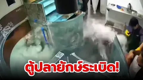 ตู้ปลายักษ์ระเบิด! ปลาสดๆ พุ่งทะลักทั่วร้านอาหารจีนฝูโจว