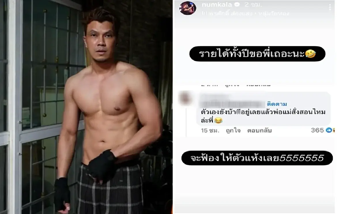 นอกจากนี้ทาง หนุ่ม กะลา ก็ได้แคปโพสต์ที่บรรดาชาวเน็ตด่าตนเองว่า บ้ากี แล้วพ่อแม่สั่งสอนไหม โดยหนุ่ม กะลา ได้เขียนข้อความลงในไอจีสตอรี่เอาไว้ว่า “รายได้ทั้งปีขอพี่เถอะนะ จะฟ้องให้ตัวแห้งเลย 55555”