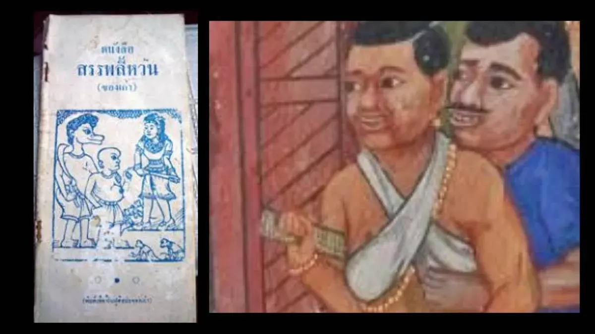 ◉ เมื่อนั้น ไทยอก โศกาน้ำตาไหลให้คิดอัดอั้นตันใจ เพราะโหตีศรีใสมาเป็นเมีย เขาคิดว่าเราจะเจ็ดยับ จึงใจให้ขับเราเสีย อกใจให้ร้อนดังไฟเลีย ไทยอก…แล้วคลาไคล ฯ...