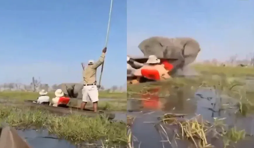 เหตุการณ์ระทึกดังกล่าว เกิดขึ้นตั้งแต่วันที่ 27 กันยายน 2568 ที่ผ่านมา บริเวณจุดน้ำตื้นของสามเหลี่ยมปากแม่น้ำโอคาวังโก ที่เป็นเขตคุ้มครองและอนุรักษ์สัตว์ป่าที่มีชื่อเสียงของ บอตสวานา ในช่วงเวลาเกิดเหตุนักท่องเที่ยวชาวอเมริกันและอังกฤษกลุ่มหนึ่ง ได้ล่องเรือแคนูมาถึงยังจุดเกิดเหตุ ซึ่งอยู่ใกล้กับโขลงช้างมากเกินไป ทำให้แม่ช้างตัวหนึ่งหันกลับมามองนักท่องเที่ยวด้วยความโกรธเกรี้ยว ก่อนจะพุ่งเข้าหาอย่างรวดเร็ว
