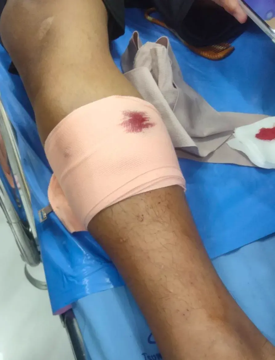 เมื่อถึงที่เกิดเหตุพบรถยนต์เก๋งยี่ห้อโตโยต้า สีขาว ทะเบียนนครศรีธรรมราช สภาพชนอัดรถยนต์ส่วนบุคคล ยี่ห้อโตโยต้า ฟอร์จูนเนอร์ สีดำ ของชาวบ้าน ตรวจสอบรถยนต์เก๋ง พบว่าถูกกระสุนเจาะกระจกหลัง 1 รู ประตูหลัง 2 รู และประตูหน้าซ้าย 1รู ส่วนในรถพบคนเจ็บ 3 ราย ถูกยิงได้รับบาดเจ็บ ชื่อนายบุญญฤทธิ์ อายุ 20 ปี นายศักรินทร์ อายุ 20 ปี และนายพัชรพงศ์ิอายุ 22 ปี ถูกยิงด้วยอาวุธปืน ขนาด 9 มม.เข้าขาและลำตัวเจ็บทั้ง 3 ราย ถูกเจ้าหน้าที่มูลนิธิประชาร่วมใจ นำส่งโรงพยาบาลทุ่งสง และที่เกิดเหตุพบหัวกระสุน 9 มม.ตกอยู่ 3 หัว จึงเก็บไว้เป็นหลักฐาน ส่วนผู้ก่อเหตุสอบสวนทราบเบื้องต้นชื่อนายเค ยังไม่ทราบชื่อจริงและนามสกุล อยู่ระหว่างหลบหนี