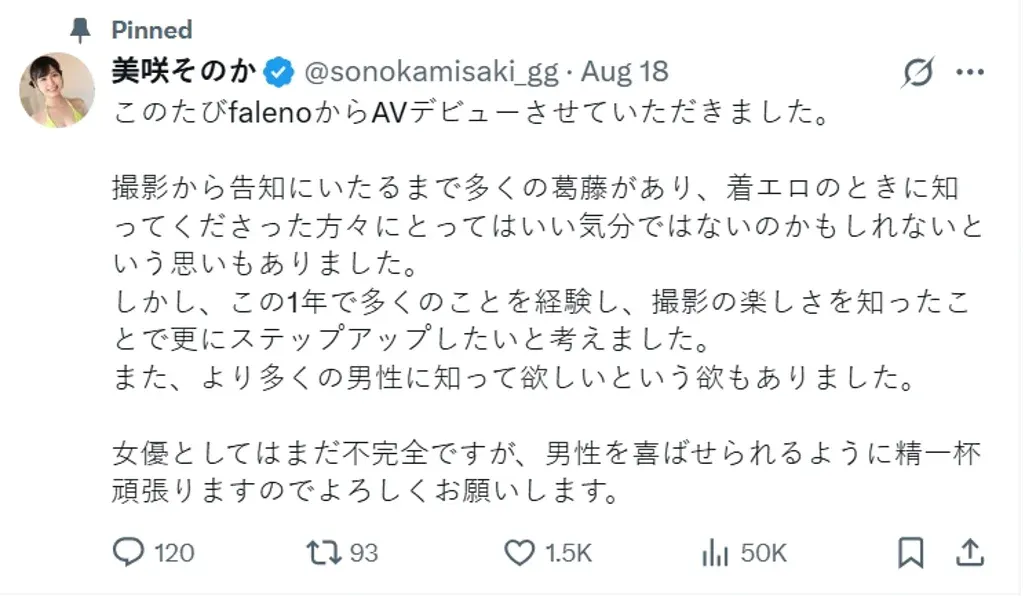 สิ่งที่ทำให้การประกาศครั้งนี้เป็นที่น่าสนใจอย่างยิ่งคือ คำมั่นสัญญา ที่เธอได้มอบให้กับผู้ชมกลุ่มใหม่ เธอระบุอย่างชัดเจนว่าเธอจะ "พยายามอย่างเต็มที่เพื่อเอาใจผู้ชาย" คำพูดนี้แสดงให้เห็นถึงความมุ่งมั่นและ ความเป็นมืออาชีพ ในการทำงานในวงการ AV โดยมีเป้าหมายเพื่อมอบประสบการณ์และความพึงพอใจสูงสุดให้กับผู้ชม ซึ่งถือเป็นการส่งสัญญาณถึงการทุ่มเทอย่างจริงจังในบทบาทใหม่นี้