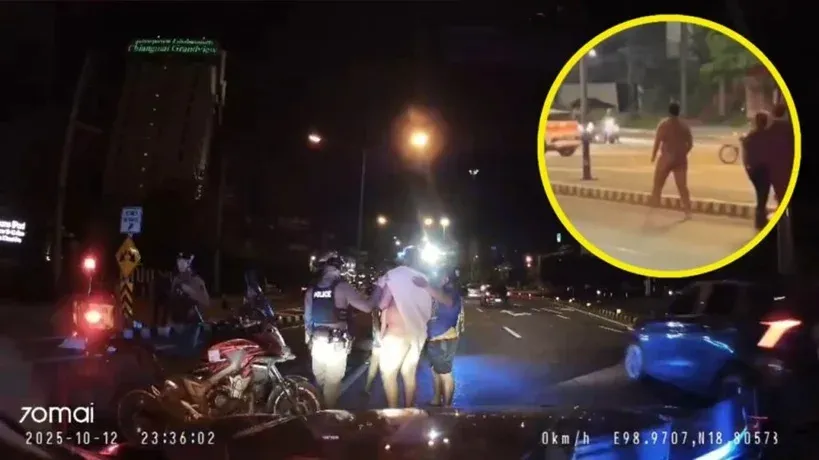 หนุ่มไทยเดินแก้ผ้ากลางเมืองเชียงใหม่..ทำเอาหลายคนถึงกับกรี๊ดลั่น! และช่วยกันจับ