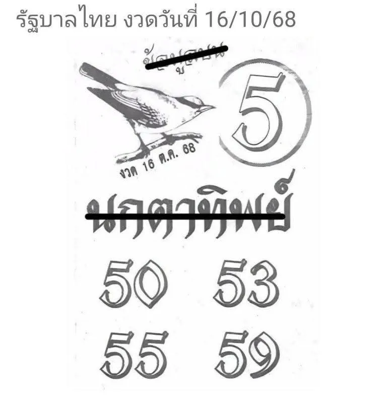เลขเด็ดนกตาทิพย์ งวดวันพฤหัสบดีที่ 16 ตุลาคม 2568