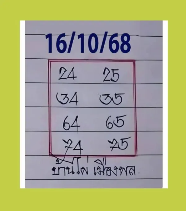 เลขเขียนมือ บ้านไผ่เมืองพลงวดวันที่ 16 ตุลาคม 2568
