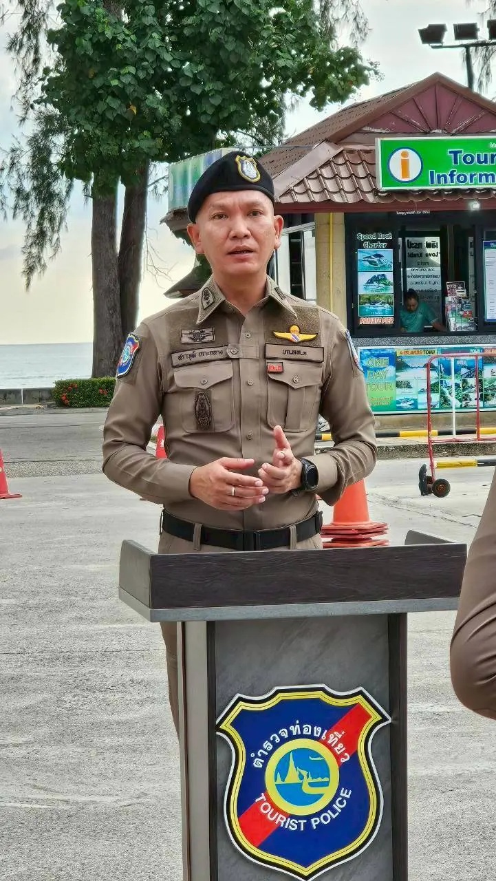 เวลา 17.00 น.วันที่ 18 ตุลาคม 2568 ที่ S.T.C. อ่าวนางแลนด์มาร์ค ตำบลอ่าวนาง อำเภอเมืองกระบี่ เจ้าหน้าที่ตำรวจท่องเที่ยวจาก ส.ทท.3 กก.2 บก.ทท.3 (กระบี่) นำโดย พ.ต.ท.สราวุฒิ เกาะกลาง สว.ส.ทท.3 กก.2 บก.ทท.3 ,ร.ต.อ.ธีระพงค์ ธรฤทธิ์ รอง สว.กก.2 ปรก.ส.ทท.3 กก.2 บก.ทท.3 ,ร.ต.ท.โรม รัตนกาญจน์ รอง สว.(ป) ส.ทท.3 กก.2 บก.ทท.3