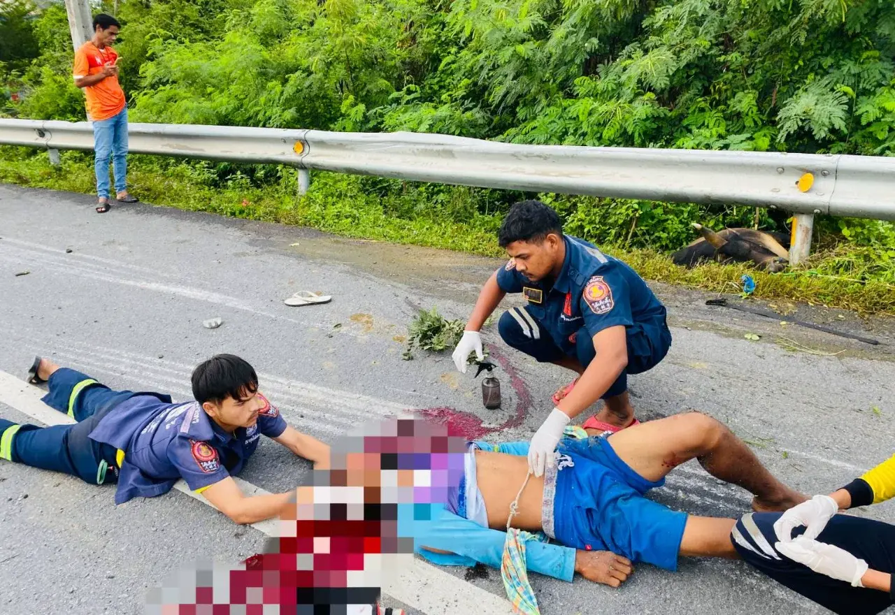 บริเวณโค้งปาล์มดี บนถนนสายนครศรี – สงขลา อ.หัวไทร จึงพร้อมด้วยแพทย์เวรโรงพยาบาลหัวไทร และเจ้าหน้าที่มูลนิธิใต้เต็กตึ๊ง รุดไปตรวจสอบ