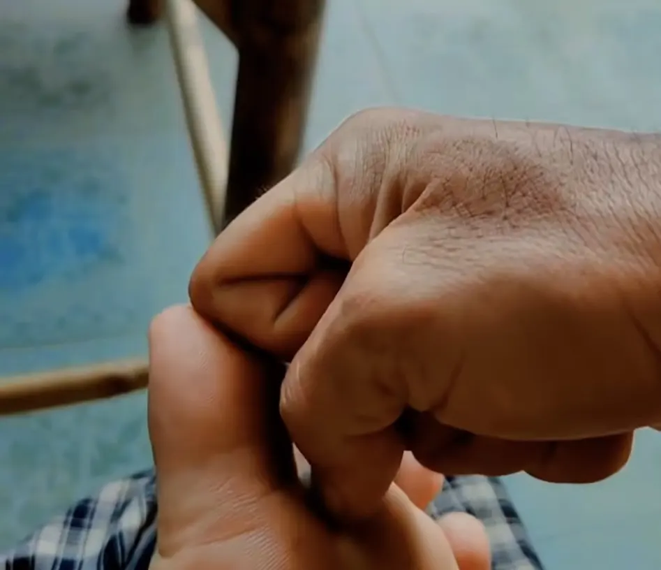ใช้นิ้วมือไปนวดฝานิ้วหัวแม่เท้า นวดขึ้น 50 ครั้ง นวดลง 50 ครั้ง ทั้งหัวแม่เท้าซ้ายและขวา