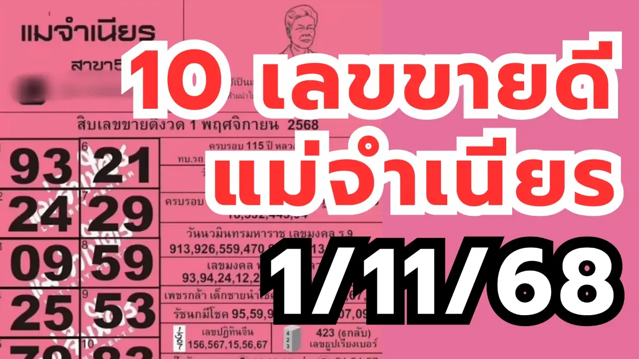 สิบเลขขายดีแม่จำเนียร งวด 1/11/68