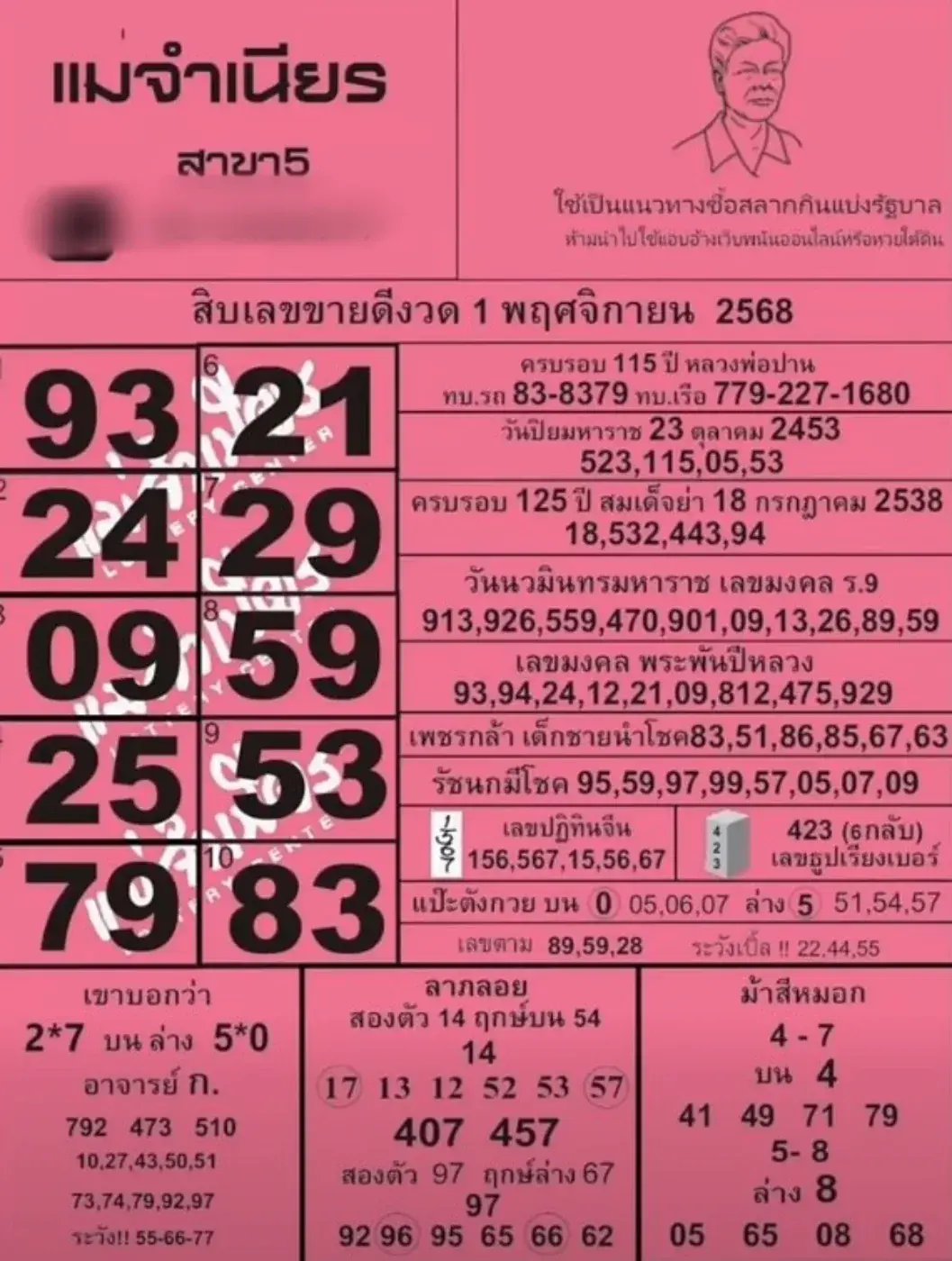 เลขเด็ด "แม่จำเนียรล็อตเตอรี่" งวดวันที่ 1 พฤศจิกายน 68 มาแล้ว!..คอหวยส่องด่วน!!