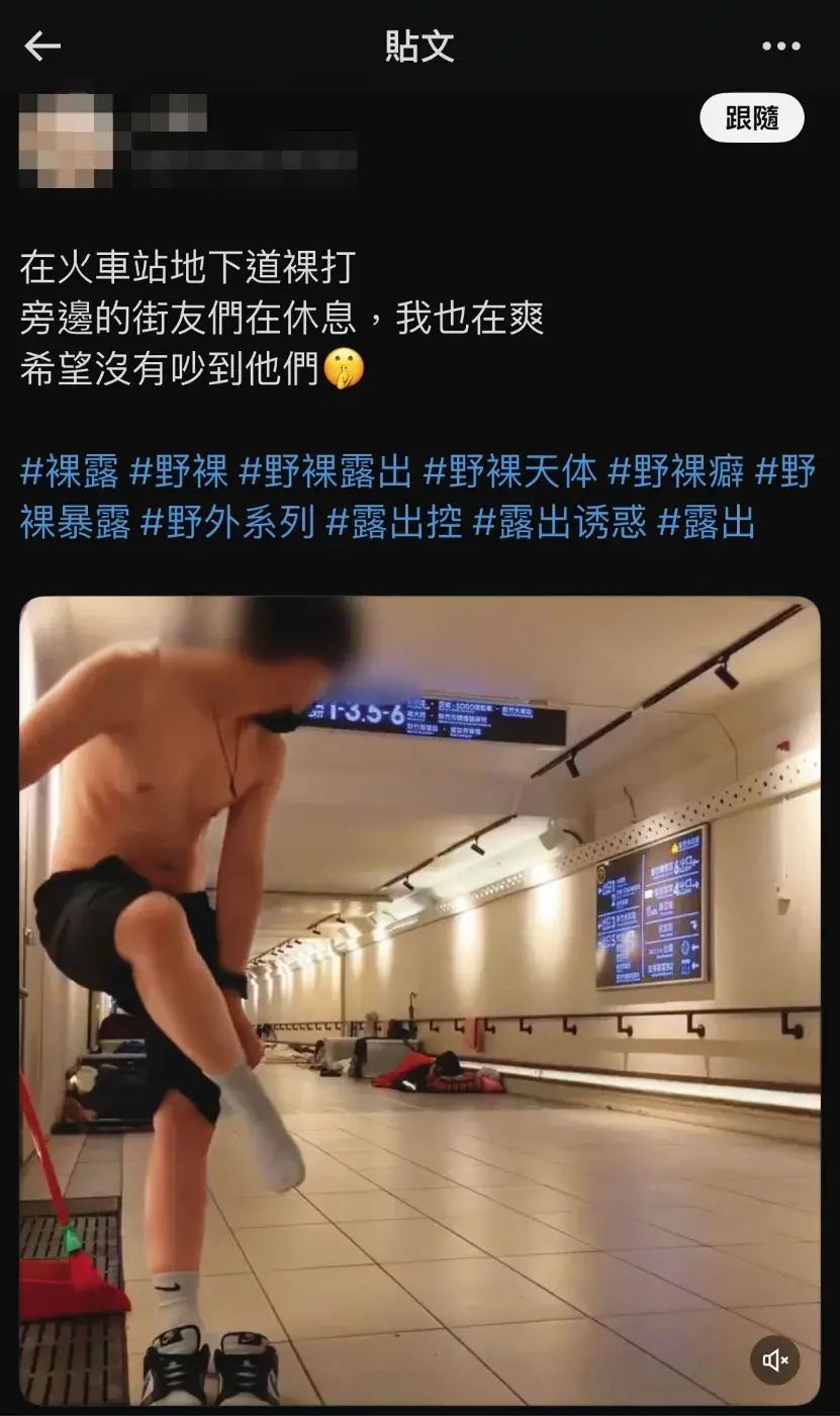 จากคำให้การของผู้ใช้งาน X รายหนึ่ง (คุณ A) เธอกล่าวว่า ในช่วงสองเดือนที่ผ่านมานี้ มีการแพร่ระบาดของวิดีโอชายหนุ่มเปลือยกายและสำเร็จความใคร่ในที่สาธารณะอย่างน่าตกใจ โดยเนื้อหามีความโจ่งแจ้งและเน้นถ่ายใบหน้าของตัวละครอย่างชัดเจน คุณ A ได้นำหลักฐานเป็นวิดีโอล่าสุดที่ชายหนุ่มเปลือยกาย ก้มลงสำเร็จความใคร่บริเวณทางออกสถานีรถไฟฟ้าใต้ดิน (MRT) ที่มีแสงสว่างจ้า โดยมีการติดแฮชแท็กที่เกี่ยวข้อง เช่น #ทางออกสถานีรถไฟใต้ดิน #ถุงเท้าสีขาว และ #นักกีฬาชาย เพื่อดึงดูดความสนใจ ซึ่งคลิปดังกล่าวยังทิ้งร่องรอยคราบอสุจิไว้บนพื้นอย่างไม่สะทกสะท้าน