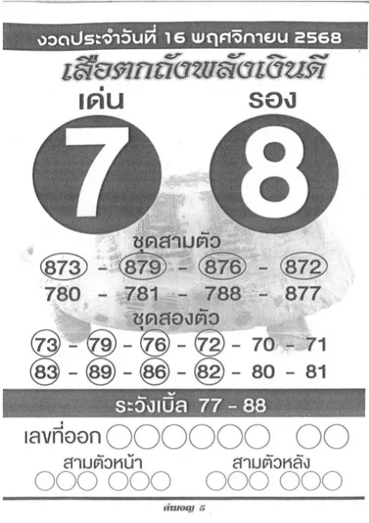 มาแล้ว! เลขเด็ด "เสือตกถังพลังเงินดี" งวดวันที่ 16 พฤศจิกายน 68..ส่องด่วนเลย!!