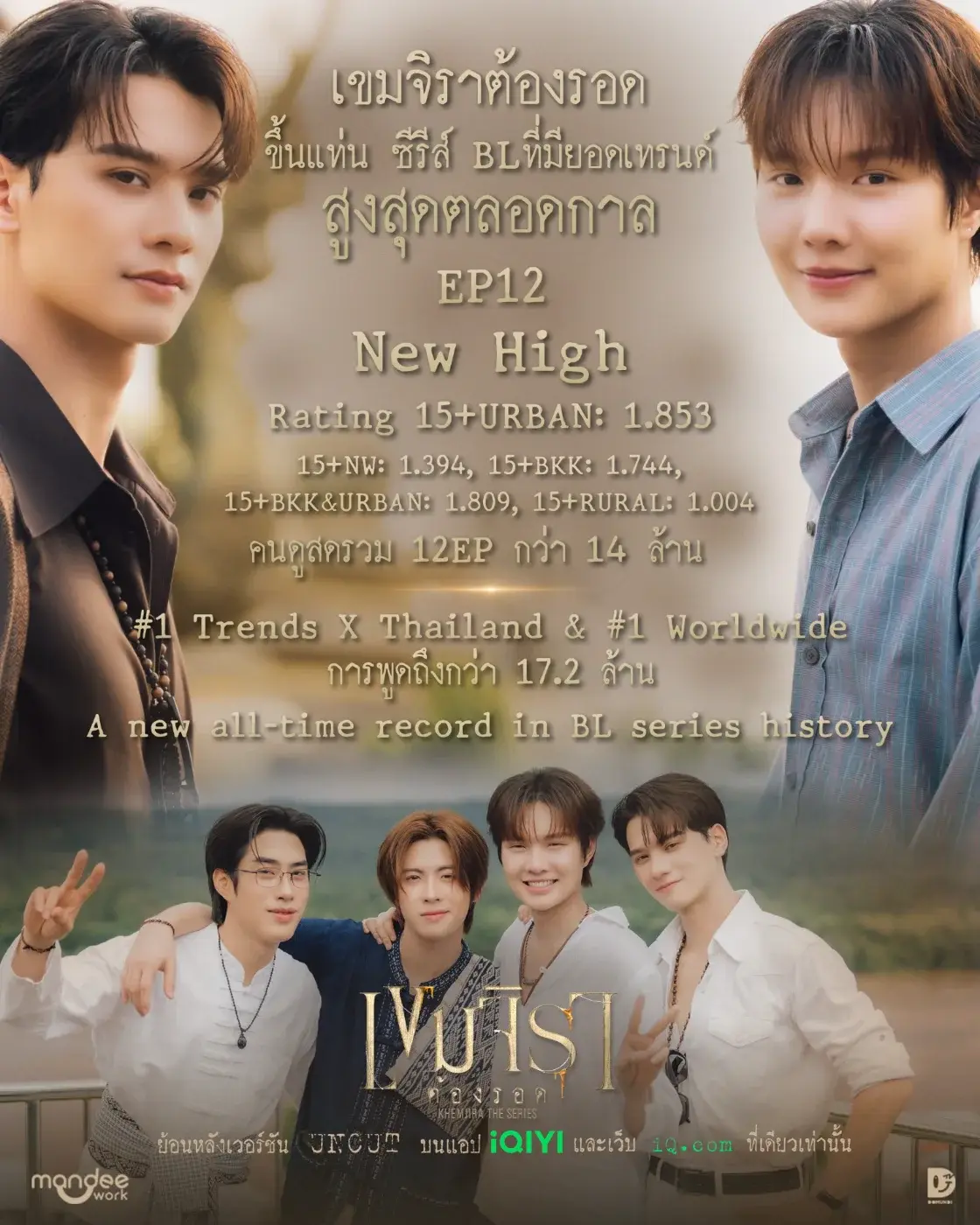 พลังซัพพอร์ตจากทั่วโลก ทำ ซีรีส์ ‘เขมจิราต้องรอด Khemjira The Series’ สร้างสถิติซีรีส์ BOY LOVE ที่มียอดเทรนด์สูงสุดตลอดกาล ทะลุ 17.2 ล้านครั้ง
