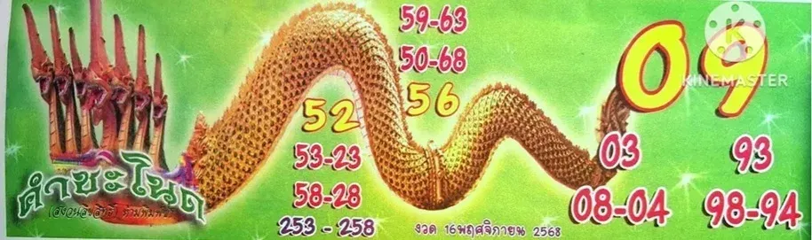 - เลขท้าย 2 ตัว : 59 - 63 - 50 - 68 - 53 - 23 - 58 - 28 - 03 - 09 - 08 - 04 - 98 - 94