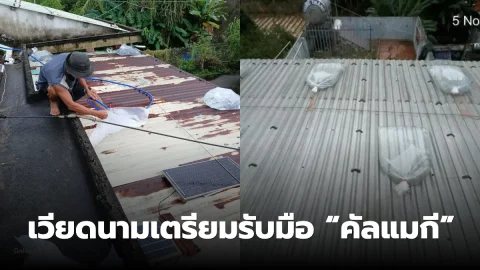 🇻🇳 เวียดนามเตรียมรับมือ “คัลแมกี” ขึ้นฝั่งวันนี้! ชาวบ้านงัดภูมิปัญญาท้องถิ่น สู้พายุแรงด้วย “ถุงน้ำ-กระสอบทราย” ถ่วงหลังคา กันปลิวว่อน