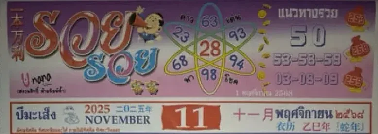 โดยแนวทางลอตเตอรี่ สำหรับ ‘ปฏิทินรวย รวย’ งวดวันที่ 16/11/68 มีดังนี้